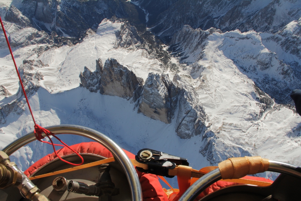 Realizamos dos vuelos: el primero, de 105 kms desde Dobbiaco hasta las costas del Adriático atravesando de Norte a Sur las Dolomitas y sobrevolando un mítico lugar para la escalada como son “le tre cime di Lavaredo”. La velocidad, 50 km/h, era la ideal para poder disfrutar del increíble paisaje nevado que nos ofrecían las montañas. Pudimos descender hasta casi rozar las crestas y también subir hasta los 5.200 mts. para tener una visión mágica de todas las Dolomitas.